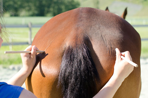 Das Pferd sollte die letzten Stunden vor der Behandlung nicht gerade bewegt worden sein. Ausserdem sollte es sauber und trocken sein, mit ausgekratzten Hufen an Halfter und Strick.